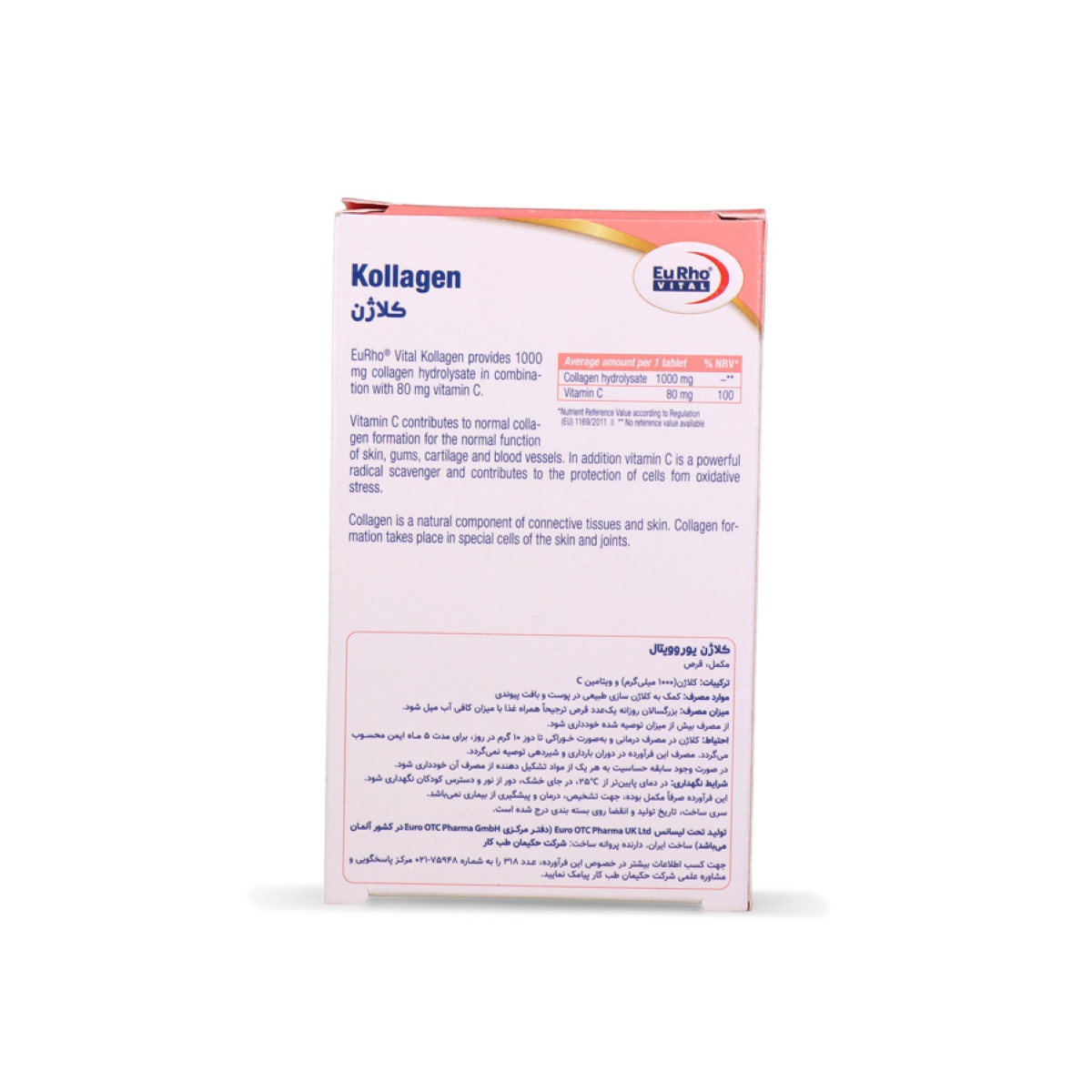 قرص کلاژن یوروویتال حاوی 1000 میلی‌گرم کلاژن به‌همراه ویتامین C است که علاوه بر جبران کمبودها، به تحریک ساخت کلاژن در بدن کمک می‌کند.
