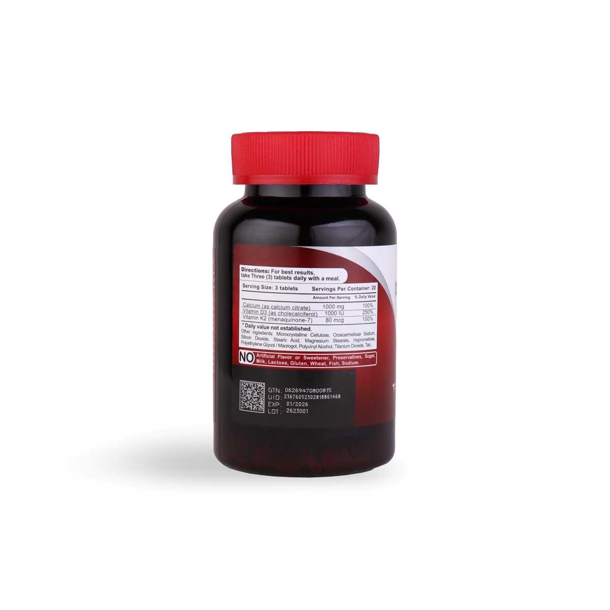 • ویتامین کا2: 80 میکروگرم ویتامین K2 به فرم مناکینون 7 است.